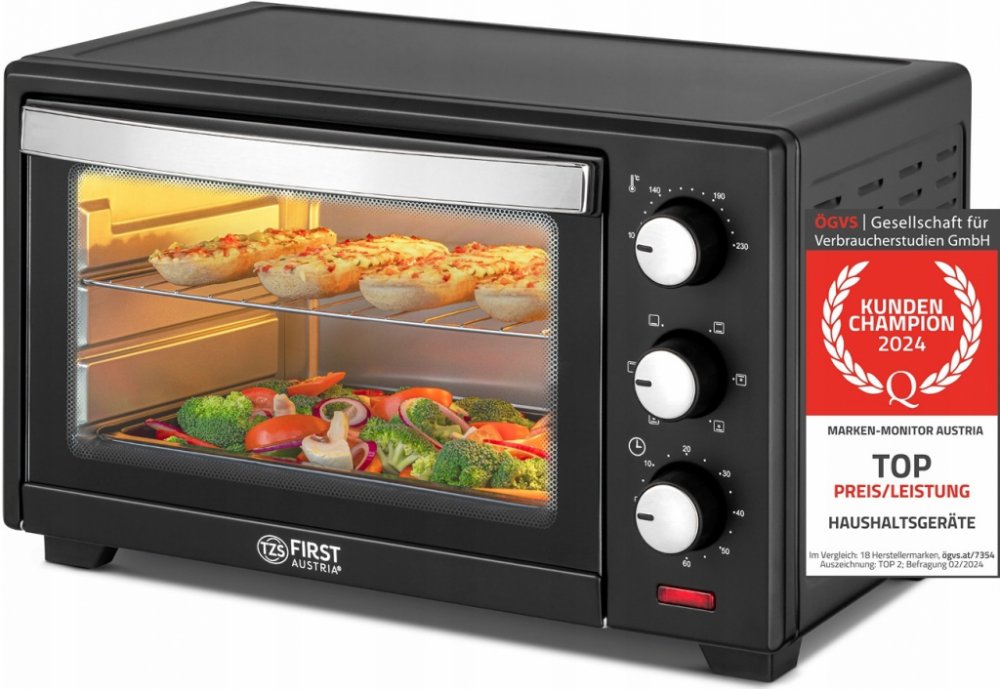 Přenosná elektrická trouba o výkonu 1380 W a objemu 19 l. Má většinu funkcí, které nabízí standardní trouba. Její velikost umožňuje péct kuřecí maso, brambory nebo koláče.