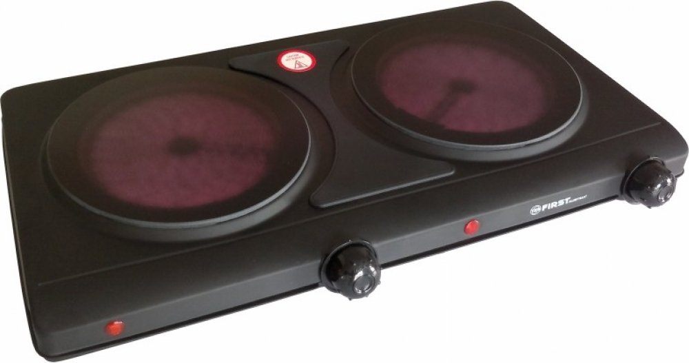 Klasika domů, na chatu, chalupu a stejně tak do kanceláře. Sklokeramický dvouplotýnkový vařič First v černé barvě, s dvěma ovladači pro každou ploténku. Ve srovnání s litinovými ploténkami šetří čas i energii. Rychlý ohřev ploten - za 30 sekund 300 St. Celsia. Dlouhá životnost a příkon 1250 W pro každou ploténku, to jsou další parametry tohoto praktického výrobku. Dvouplotýnkový sklokeramický va...