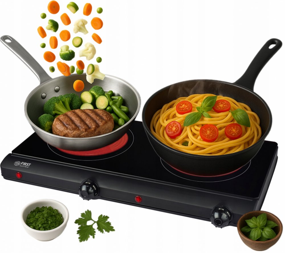 Doma nebo na cestách? S výkonem 2500 W nebylo vaření nikdy tak snadné. Tuto keramickou varnou desku s infračerveným ohřevem najdete všude. Čistý design ladí se všemi styly kuchyně a dokonale doplňuje krásně uspořádaný stůl. - Výkon: 2500 W - 300 °C za pouhých 30 sekund - Rozměry: Šířka: 50 cm Hloubka: 30 cm Výška: 7 cm - Sklokeramická varná deska - Světelné indikátory - 5stupňová regulace teploty - Termostat - 2 varné zóny o průměru 15 cm - Vhodné pro všechny typy hrnců a pánví s plochým dnem - Protiskluzové nožičky - Barva: Černá - Hmotnost: 2 kg