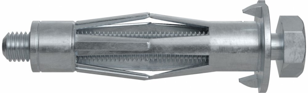 fischer HM je všestranná kovová hmoždinka do dutin s metrickým šroubem vhodná do všech deskových stavebních materiálů s tloušťkou 3 - 50 mm. Hmoždinka se aktivuje v předsazené pozici kleštěmi fischer HM-Z 1. Ramínka se řízenou deformací opřou o zadní stěnu desky. Montáž bez kleští je možné provést šroubovákem nebo aku-šroubovákem. Předmět může být libovolně upevněn a zase povolen. Hmoždinka fische...