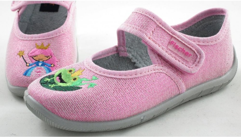 Nízké textilní bačkory Fischer pro malé a větší slečny, se zapínáním na suchý zip, lehká a flexibilní podešev. Stélka není vkládací.