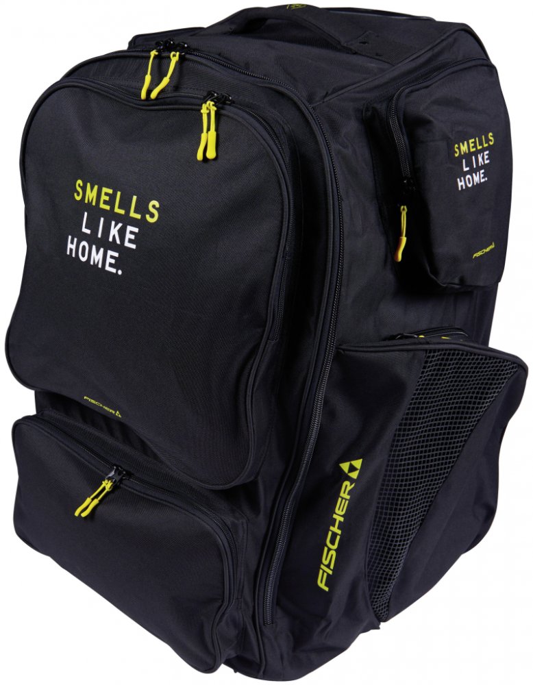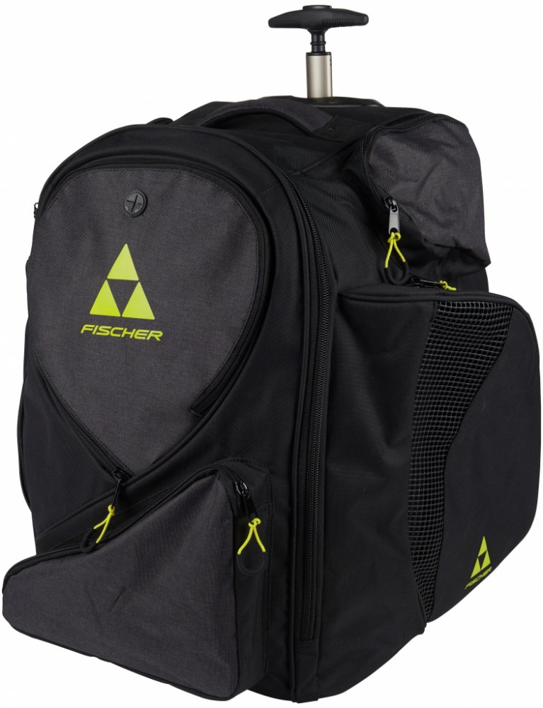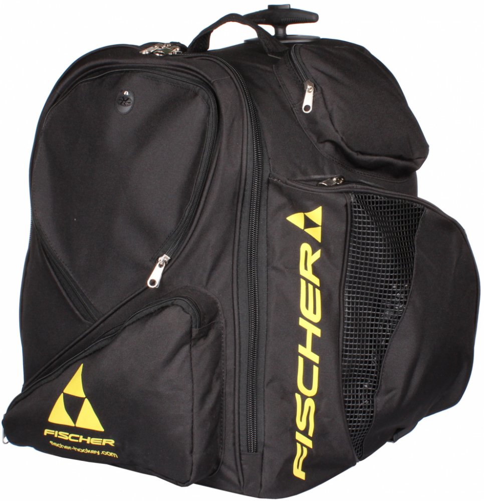 Už žádné tahání těžké výstroje na rameni – s taškou s kolečky FISCHER Backpack JR S25 bude přeprava hokejové výbavy snadná a pohodlná. Díky prostornému úložnému prostoru, odvětrávaným kapsám na brusle a možnosti nosit tašku na zádech nebo tahat za madlo získá váš mladý hokejista spolehlivého parťáka na každý trénink i zápas. Juniorská hokejová Taška s kolečky Fischer Backpack - juniorský hráčský hokejový batoh Fischer s kolečky s atraktivním designem.Taška je vyrobena z odolného 600D Polyesteru. Tento materiál zajišťuje velkou životnost, je vysoce Batoh má i zádové popruhy, pro pohodlné nošení na zádech. Backpack má Premium in-line systém koleček a výsuvného madla pro pohodlné převážení, při převážení na kolečkách lze využít i boční popruhy pro uchycení hokejek. 2 postranní odvětrávané kapsy na brusle, další kapsy pro uložení dalšího příslušenství. Výhody: Jedna taška pro vše: výstroj na záda či na kolečka – flexibilní způsob přepravy podle situace (např. když je potřeba jít pěšky, vezete do auta, atd.). Odolný materiál a zpevněné části prodlouží životnost – zvlášť při častém používání na zimních stadionech, kde bývá vlhko, led, sníh, špinavé podlaha apod. Velký objem, dost místa pro vše, co hokejista potřebuje. Boční odvětrávané kapsy. Materiál a konstrukce: Hlavní materiál: 600D polyester, což je poměrně robustní polyestrová tkanina, dobře odolávající opotřebení. Dno tašky je zpevněné, často pogumované či jinak chráněné, aby lépe sneslo náraz, vlhkost a vnitřní zatížení. Kolečka: plastová, s výsuvným madlem, pro snadnější tahání tašky. Rozměr koleček kolem 9 cm. Popruhy a úchyty: Zádové popruhy, pokud jej nosíte jako batoh. Ruční popruhy / madla i suché zipy pro přenášení v ruce. Boční odvětrávané kapsy určené na brusle – většinou síťované nebo s ventilačními prvky, aby mohly dobře schnout.