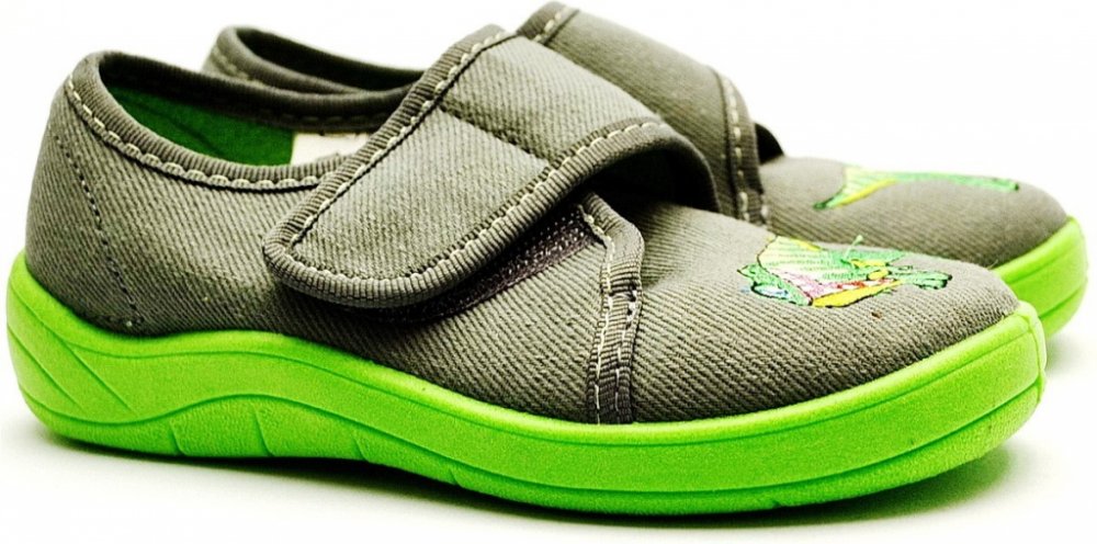 Textilní chlapecké bačkůrky se zapínáním na suchý zip. Výhodou je měkká stélka a ohebná podešev.