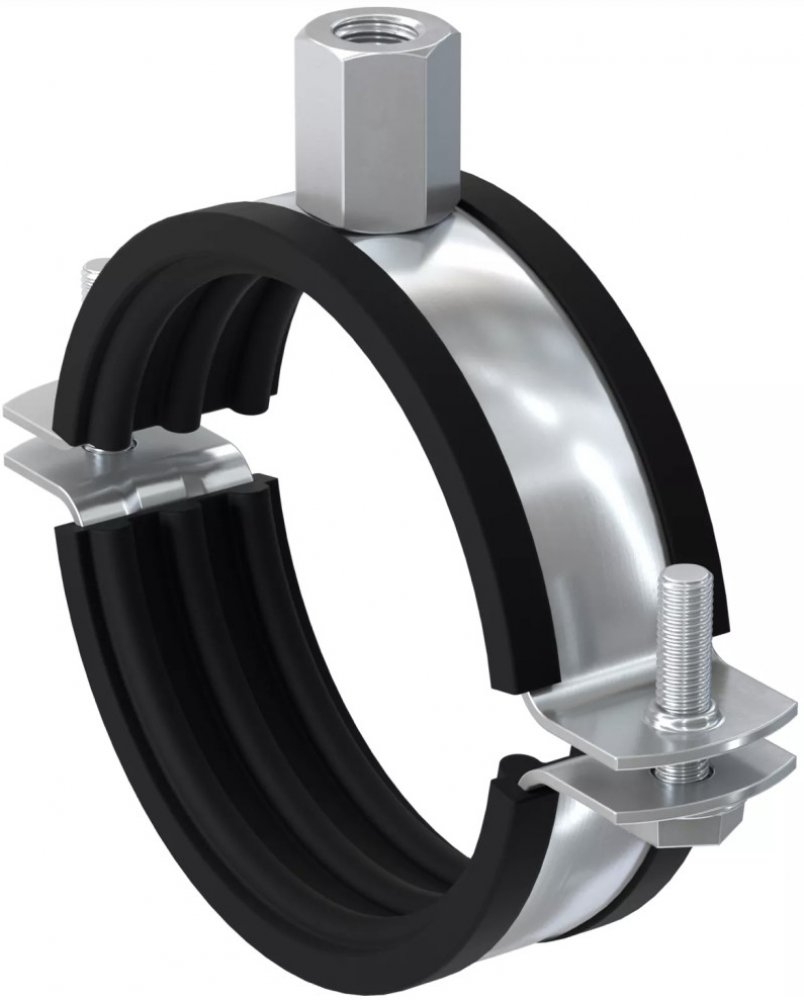 Gumová izolace zajišťuje tiché uchycení potrubí a snižuje přenos vibrací.