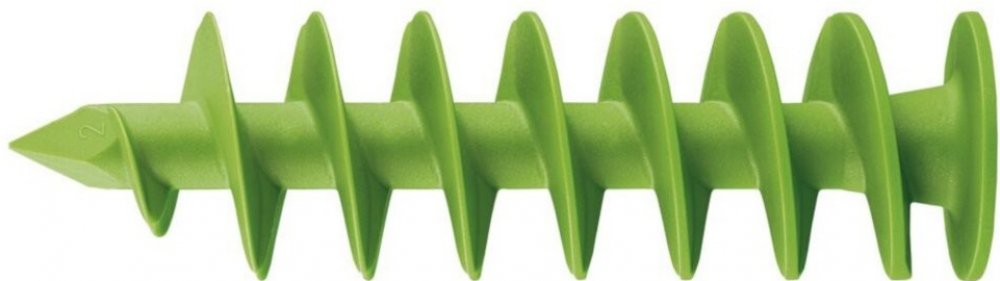 Tvar této hmoždinky umožňuje snadnou montáž do tenkých vrstev omítky bez předvrtání.