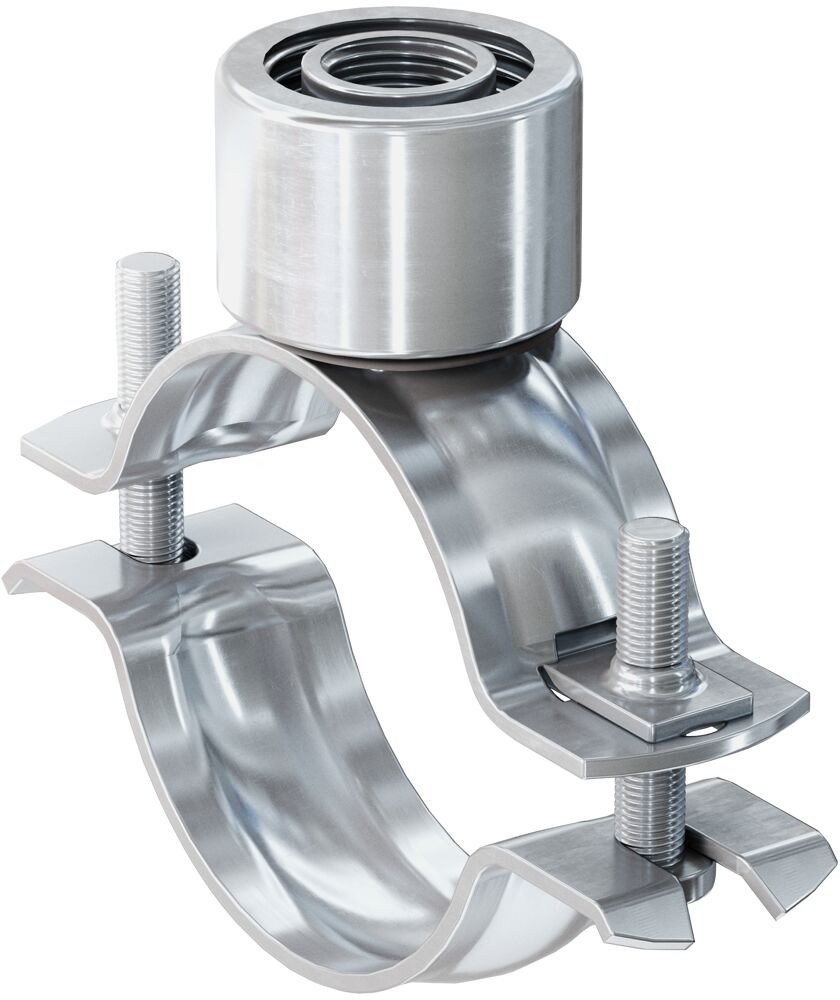 Fischer FRSN Triple je dvoušroubová objímka z galvanicky pozinkované oceli DD11 bez pryžové izolace. Upevňovací matice s trojitým závitem M8/M10/½" a rychlouzavírací mechanismus zajišťují snadnou montáž. Dva šroubky umožňují přizpůsobení sevření potrubí s průměrem 15–114 mm. Vhodná pro kovová a plastová potrubí, zavěšení je možné pomocí závitových tyčí, kombišroubů nebo závitových trubek.