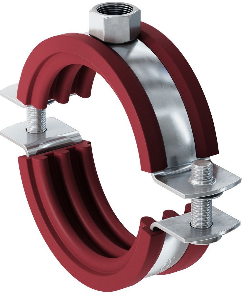 Dvoušroubová objímka fischer FRSH z galvanicky pozinkované oceli DD11 je vybavena silikonovou izolační vložkou odolnou až do +220 °C. Dva uzavírací šroubky umožňují snadno přizpůsobit sevření průměru potrubí od 15 do 168 mm. K zavěšení objímky slouží závitová tyč nebo kombišroub.