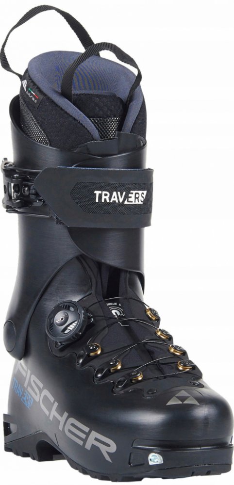 Unisex skialpinistické boty Travers TS od značky Fischer představují perfektní volbu pro všechny milovníky skialpinismu především díky velmi nízké hmotnosti a vysoké pevnosti. Obuv nabízí vše potřebné pro skialpovou túru, jelikož disponuje vynikajícími technickými vlastnostmi. Zároveň zaujme i moderním designem. Bota Travers TS byla vyrobena z vysoce kvalitního a odolného materiálu. Speciální konstrukce skeletu Lace Frame systém zajišťuje společně s Boa Fit systémem perfektní usazení nohy v botě, a poskytuje tak maximální komfort. Boa Fit systém díky plynulému dotahování lankem umožňuje přesné a rovnoměrné nastavení boty. Tento systém též velmi usnadňuje nazouvání a vyzouvání obuvi. Vysoká manžeta pokrývá celou přední část boty a zabraňuje zapadnutí sněhu dovnitř obuvi. Manžetu je možné nastavit na hike, ride nebo lock mode. Hike mode poskytuje maximální volnost pohybu při chůzi. Ride mode zablokuje manžetu tak, že flexe v přední části zůstává měkká a Vy si můžete užít perfektní jízdu v prašanu, zatímco lock mode manžetu zablokuje úplně pro nejlepší výkon na sjezdovce. Technologie Slider Buckle usnadňuje změnu režimu stoupání do režimu sjezdu. Otevřít či zavřít přezku nyní lze jediným pohybem. Přezku je navíc možné uzamknout i v otevřené poloze. Vnitřní botičky s tkaničkami Lace Liner jsou dokonale usazené ve skeletu boty, zejména v oblasti nártu a paty. Somatec umožňuje lyžařům ovládat lyže s ještě větší přesností díky přirozené poloze do V. K botičce lze pomocí suchého zipu připevnit i individuálně nastavitelný spoiler Velcro Spoiler. Vyšší spoiler poskytuje větší podporu, nižší spoiler zajišťuje nižší polohu lýtka. Botička bez spoileru má menší náklon dopředu. Perfektní uzavření manžety a nejlepší přenos sil při sjezdu poskytuje technologie Phatt Maxx Tour. Vnitřní botičky s tkaničkami Lace Liner jsou dokonale usazené ve skeletu boty, zejména v oblasti nártu a paty. Spodní část boty, která je spojena s karbonovou stélkou, je pokryta odolnou gumovou podrážkou Full Rubber Sole, díky které je obuv připravena i na nejsložitější výstupy. Original Dynafit Inserts zajišťuje kompatibilitu se všemi Tech-vázáními. šířka boty: 100 (sportovní bota)