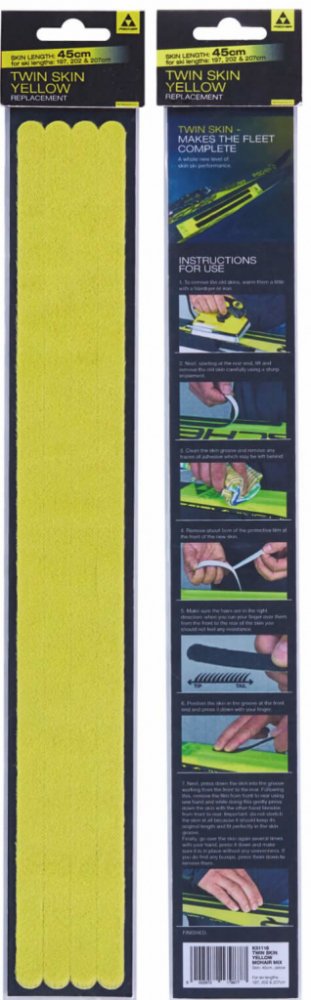 Náhradní set 70% mohérových pásů určený pro většinu Fischer Twin Skin modelů. Běžky Fischer Twin Skin Pro / Superior / Performance / Superlite / Power / Sport / Race Jr / Pro Jr / Sprint / E89 / Aeroguide / Cruiser / Transnordic 59: 330 mm pro běžky v délkách 100 / 110 / 120 cm 370 mm KIT pro běžky v délkách 117 / 127 / 130 / 137 / 140 / 147 / 150 cm 410 mm KIT pro běžky v délkách 157 / 160 / 170 / 177 / 179 / 182 / 184 / 187 / 189 / 192 cm 450 mm KIT pro běžky v délkách 194 / 197 / 199 / 202 / 204 / 207 cm KIT - délku Twin Skin pásků lze podle přiložené šablony v balení zkrátit na menší velikost