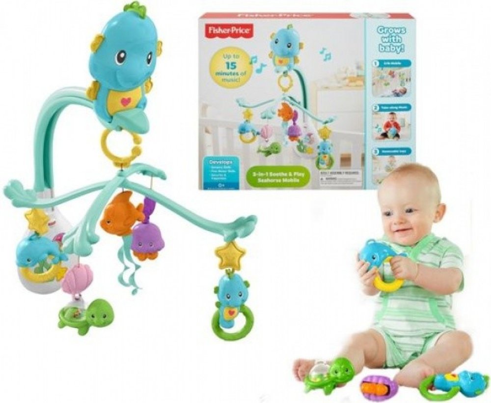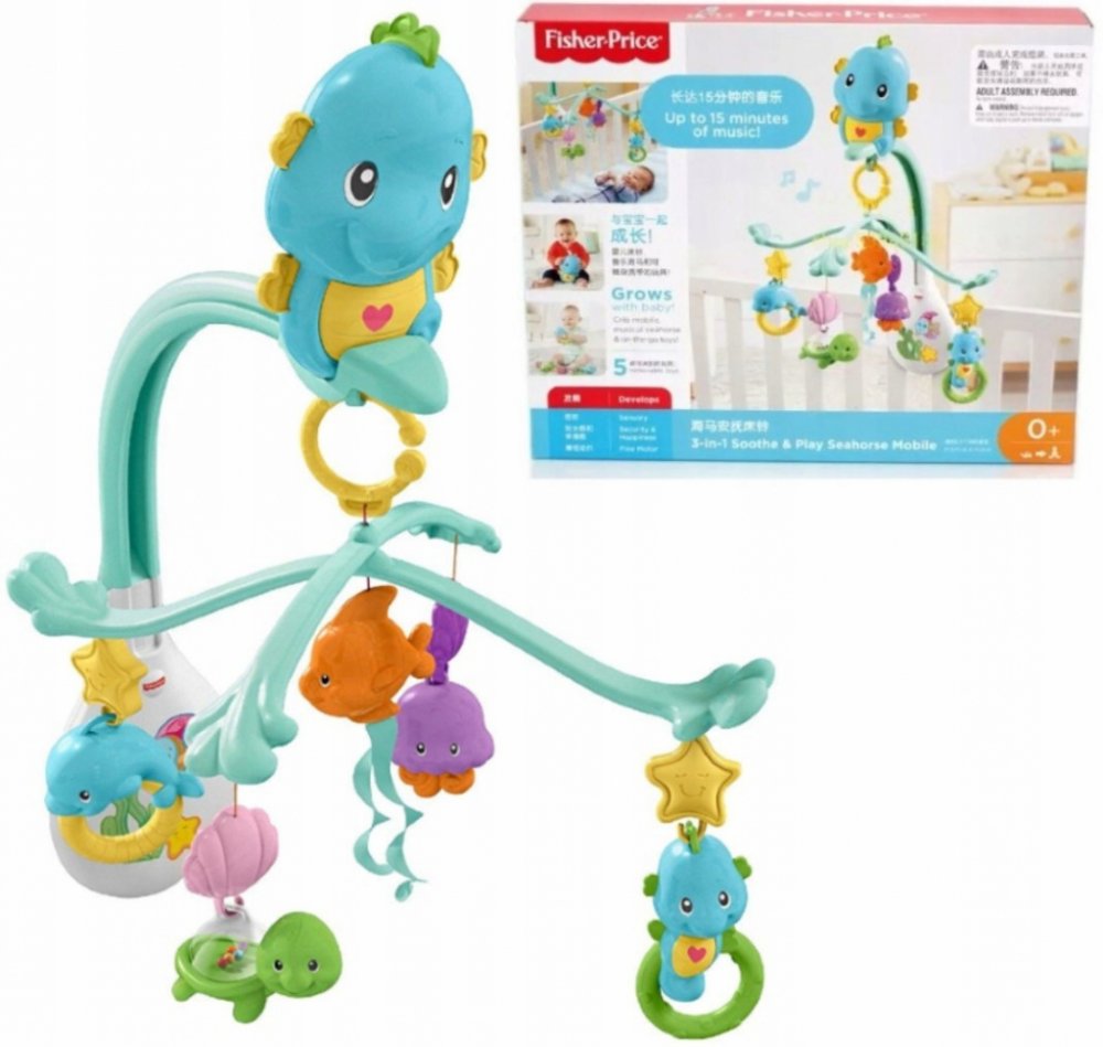 Zavěste hrací kolotoč 3 v 1 nad postýlku a Vaše dítě bude mít své 4 roztomilé zvířecí kamarády na očích při každém odpočinku! Připněte hrací kolotoč na kočárek a mořská zviratka i zpívající mořský koník budou dítko doprovázet i na procházkách. Nebo na boudičku připevněte jen samotného koníka a Vaše dítě tak s sebou bude mít alespoň jednoho kamaráda. A při písničce se vždycky utiší! Otáčivý hrací k...