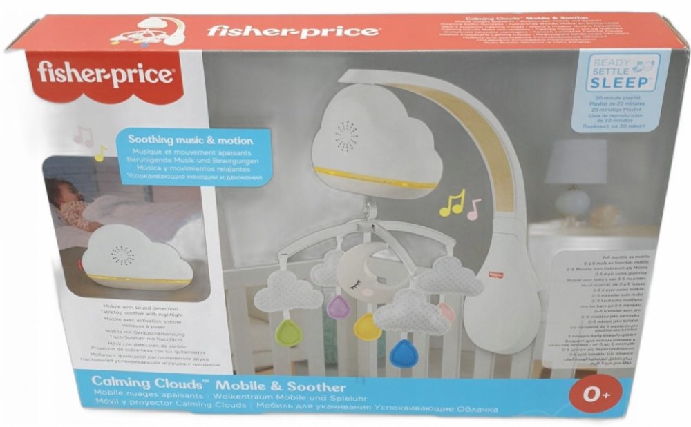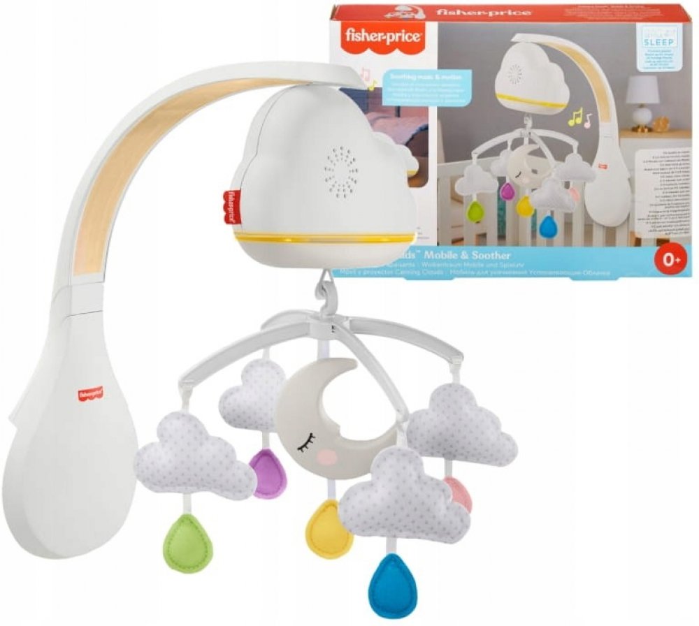 Fisher-Price usínáček Calming Clouds Mobile & Soother, akustický přístroj na postýlku Crib Sound Machine lze používat nad postýlku od 0–5 měsíců a na stůl od 5 měsíců dále.