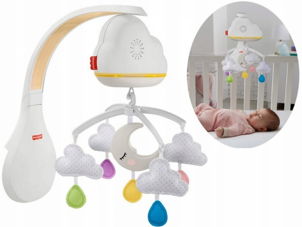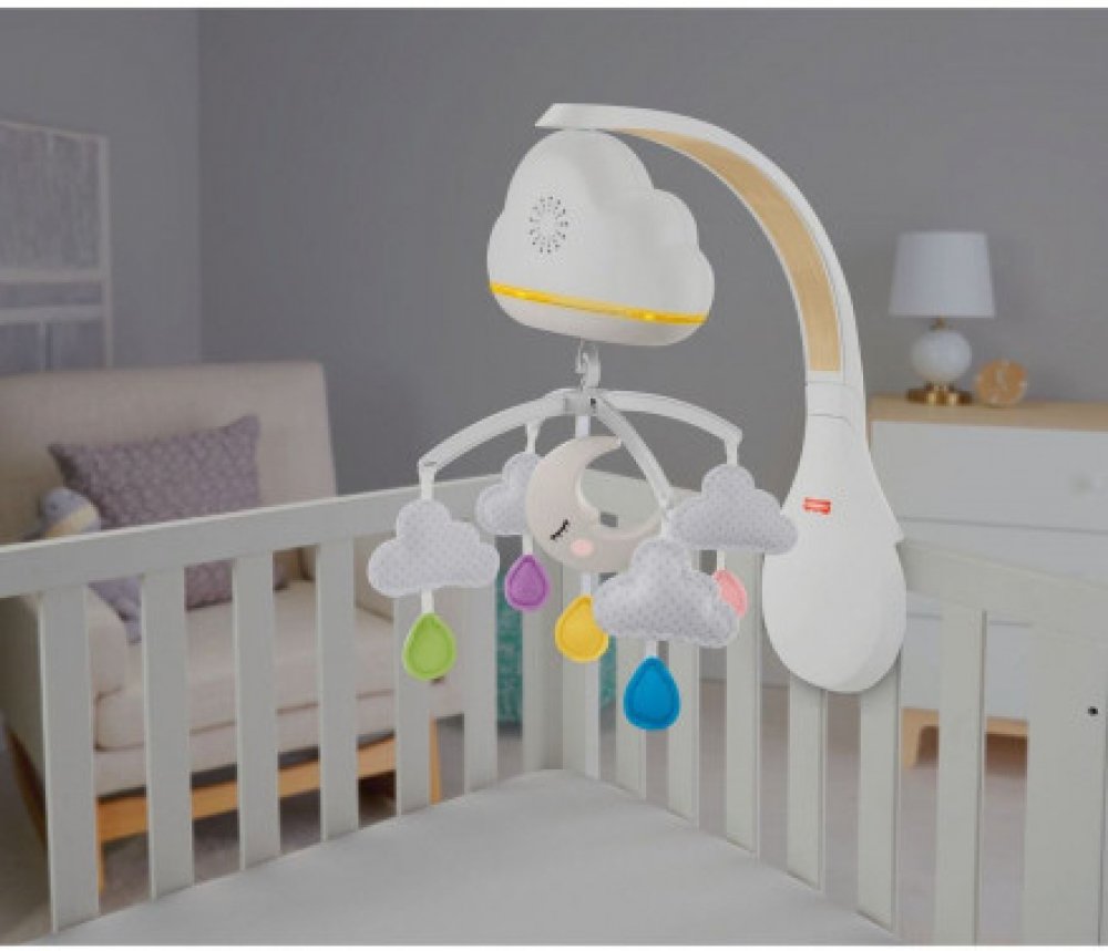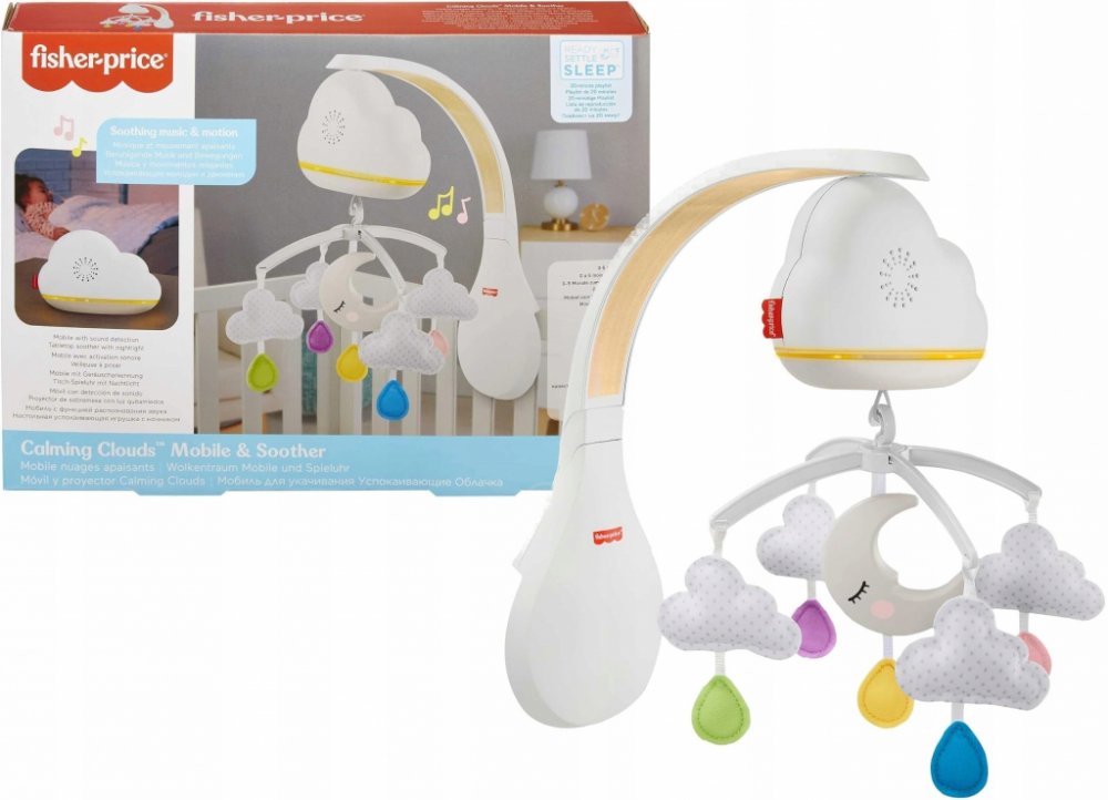 Kolotoč a usínáček Fisher-Price® Calming Clouds ™ pomáhá vašemu dítěti zklidnit se na spaní pomocí pohybu nad jeho hlavou a uklidňující hudby, zvuků a světel.