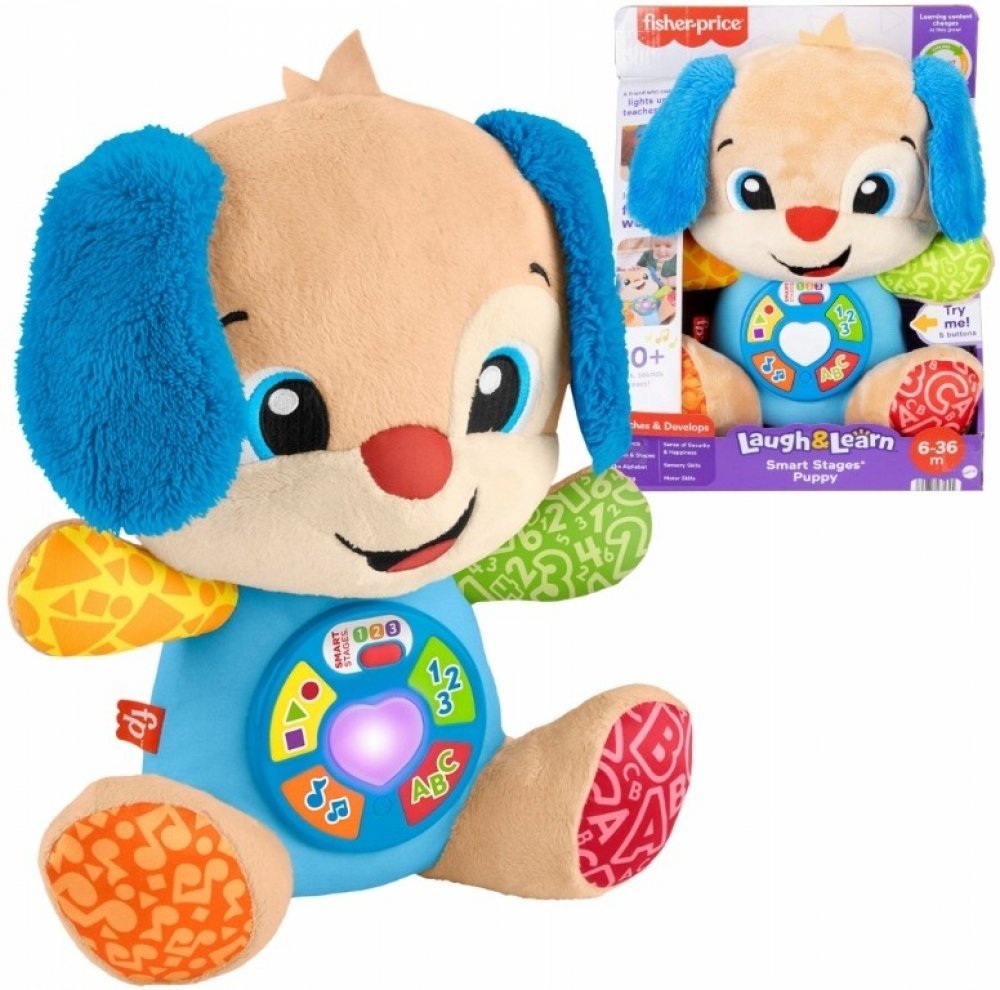 S oblíbeným roztomilým Mluvícím pejskem Smart Stages si vaše děťátko užije zábavu a naučí se spoustu věcí! Stačí štěňátko pohladit po jeho jemném kožíšku a začne zpívat veselé písničky. Díky technologii Smart Stages mění písničky s tím, jak vaše děťátko roste. Nikdy se tak nebude nudit. Každé dítě se vyvíjí svým vlastním tempem, proto můžete zvolit takové, které nejlépe vyhovuje vašemu děťátku. Hračka mluví česky. Smart Stages Technology: Úroveň 1 - Objevování – vhodné pro děti od šesti měsíců - první slova a zvuky zažehnou zvědavost dítěte. Úroveň 2 - Povzbuzení – vhodné pro děti od dvanácti měsíců - podporuje dítě prostřednictvím otázek a jednoduchých pokynů. Úroveň 3 - Hraní – vhodné pro děti od osmnácti měsíců - imaginativní zábava a rané hry na role. Hračka vyžaduje 3 baterie typu AA - jsou součástí balení. Vhodné pro děti od 6 měsíců.