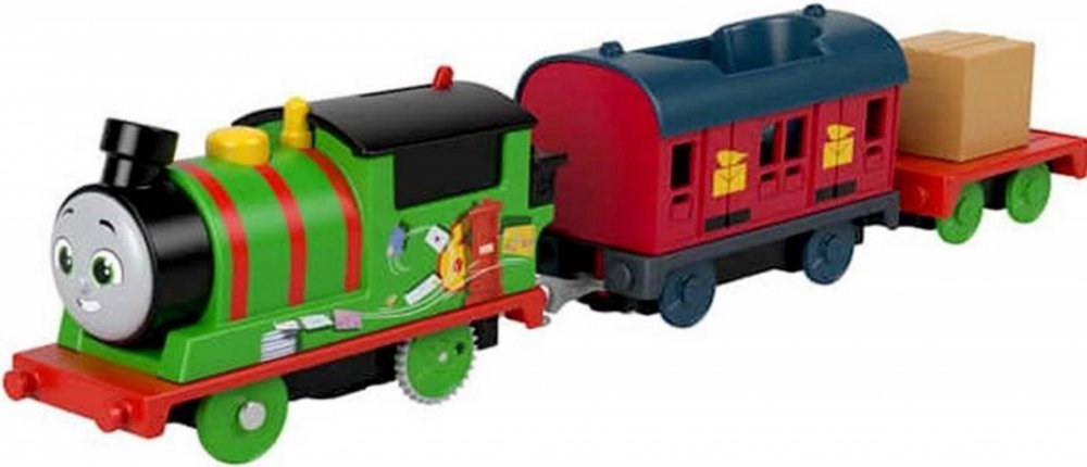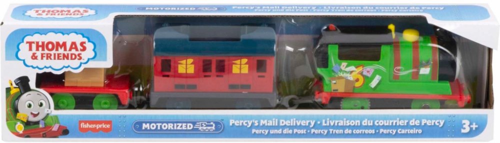 Lokomotiva Piotruś na baterie je připravena k provozu na ostrově Sodor – sama táhne po trati poštovní vůz a plošinu s nákladním boxem. Malí průvodčí mohou posunout spínač na střeše lokomotivy a poslat tak Petra na veselou hudební cestu po jakékoli trati, Tomáš a Přátelé, kromě těch z dřevěné linie. (Tory a sady se prodávají samostatně v závislosti na dostupnosti). Hračka vyžaduje 2 baterie typu AAA.