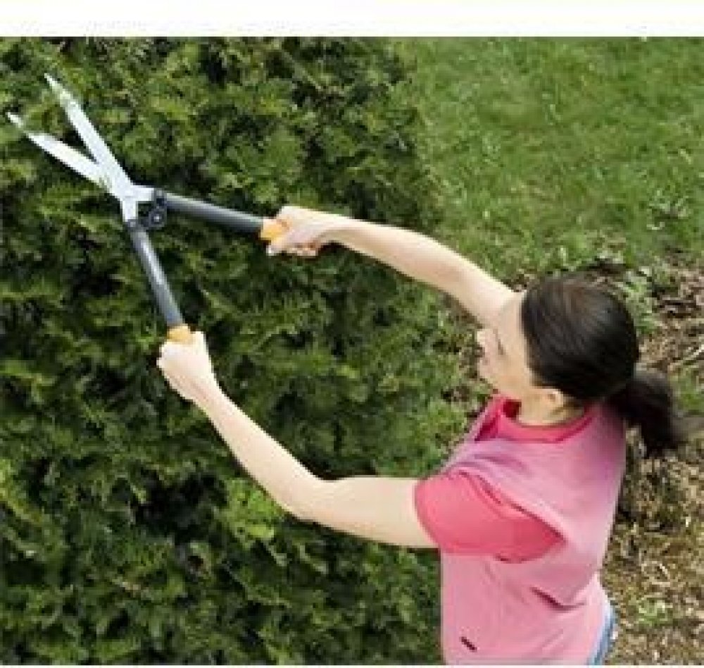 Velmi lehké dvouruční nůžky na živý plot s max. průměrem střihu 10 mm.