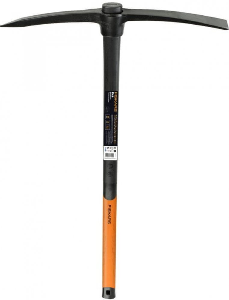 Pro hrubé práce v kamenitých a tvrdých půdách. Strana s motykou pro kopání, přeseknutí kořenů atd. Špičatá strana pro odstranění kamenů, pařezů atd. Naostřená čtyřhranná špička, oválné oko. Násada s jádrem ze skelných vláken. Rukojeť s neklouzavou vrstvou absorbující vibrace. Kovaná a kalená uhlíková ocel. Dodává se nesmontovaný. Sestavení je ovšem velmi snadné: stačí zasunout násadu ze shora do hlavice, pevně utáhnout a je hotovo. Díky konickému tvaru se násada zaklíní v hlavě a nepotřebujete tak pro jeho sestavení žádné nářadí.