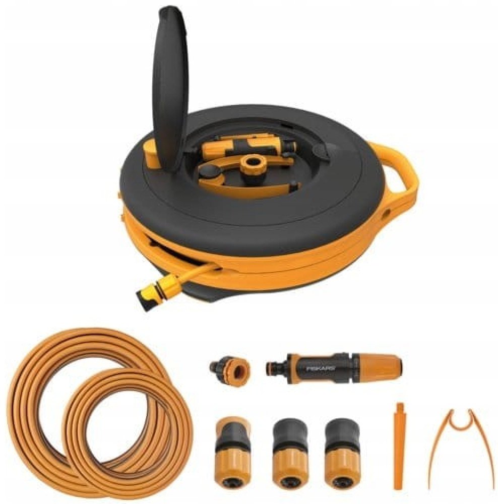 Zkuste Fiskars buben s hadicí S, 9 mm, dosah 15 m. Praktická sada s