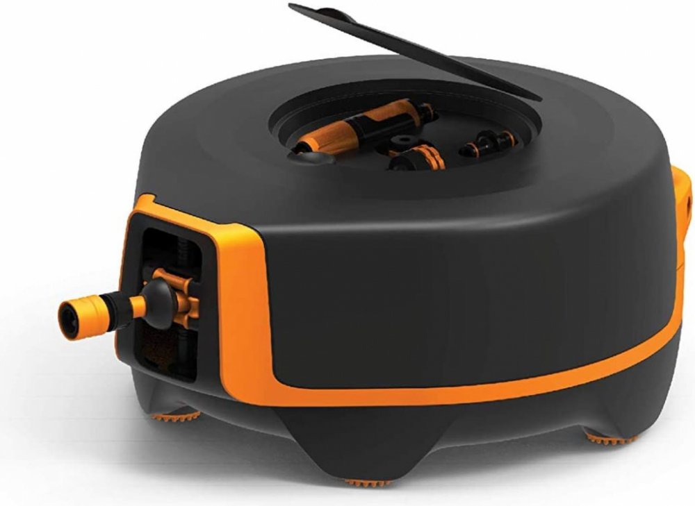 - Zavlažovací hadice je 20 m dlouhá a automaticky se navíjí.