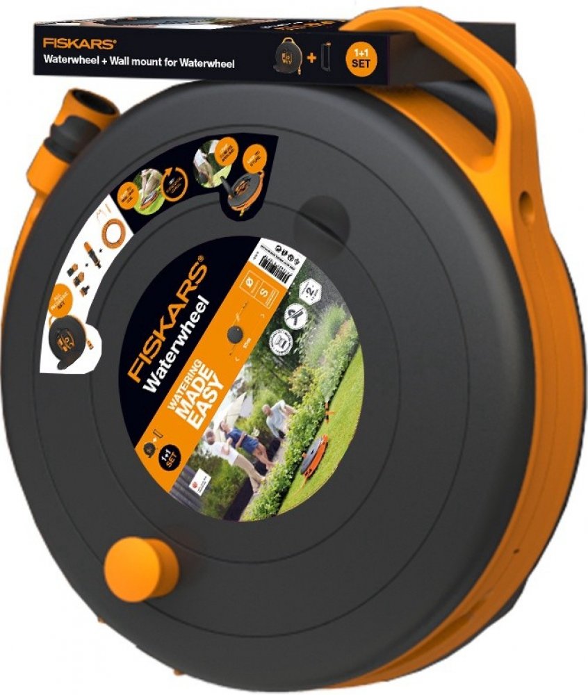 Obsahuje 1020436 zavlažovací buben S s 15 m hadicí a 1020448 držák na stěnu pro buben S