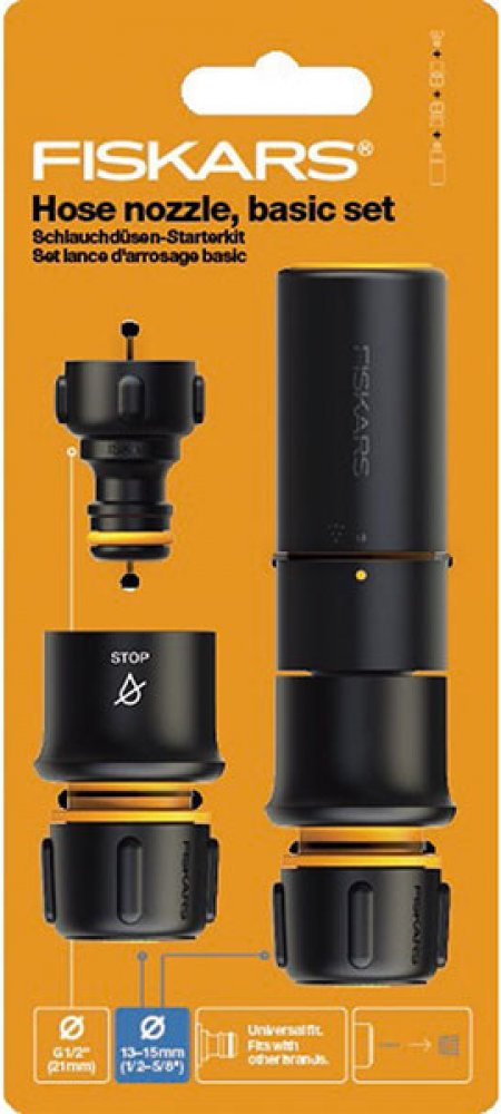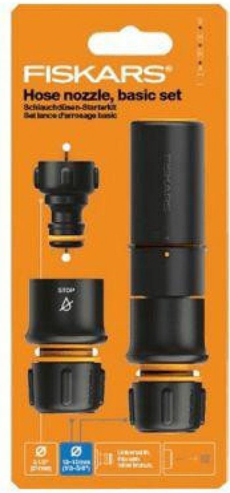 Sada zavlažovací 1/2"-5/8" Solid Fiskars 1027090 Základní sada koncovek na zavlažovací hadice 1/2"-5/8" a vodovodní kohoutek s vnějším závitem G1/2". Sada obsahuje: regulovatelný rozstřikovač Comfort Fiskars 1027088 rychlospojka 1/2"-5/8" Fiskars 1027076 rychlospojka 1/2"-5/8" STOP Fiskars 1027083 spojka na kohoutek G1/2" (čep) Fiskars 1027057