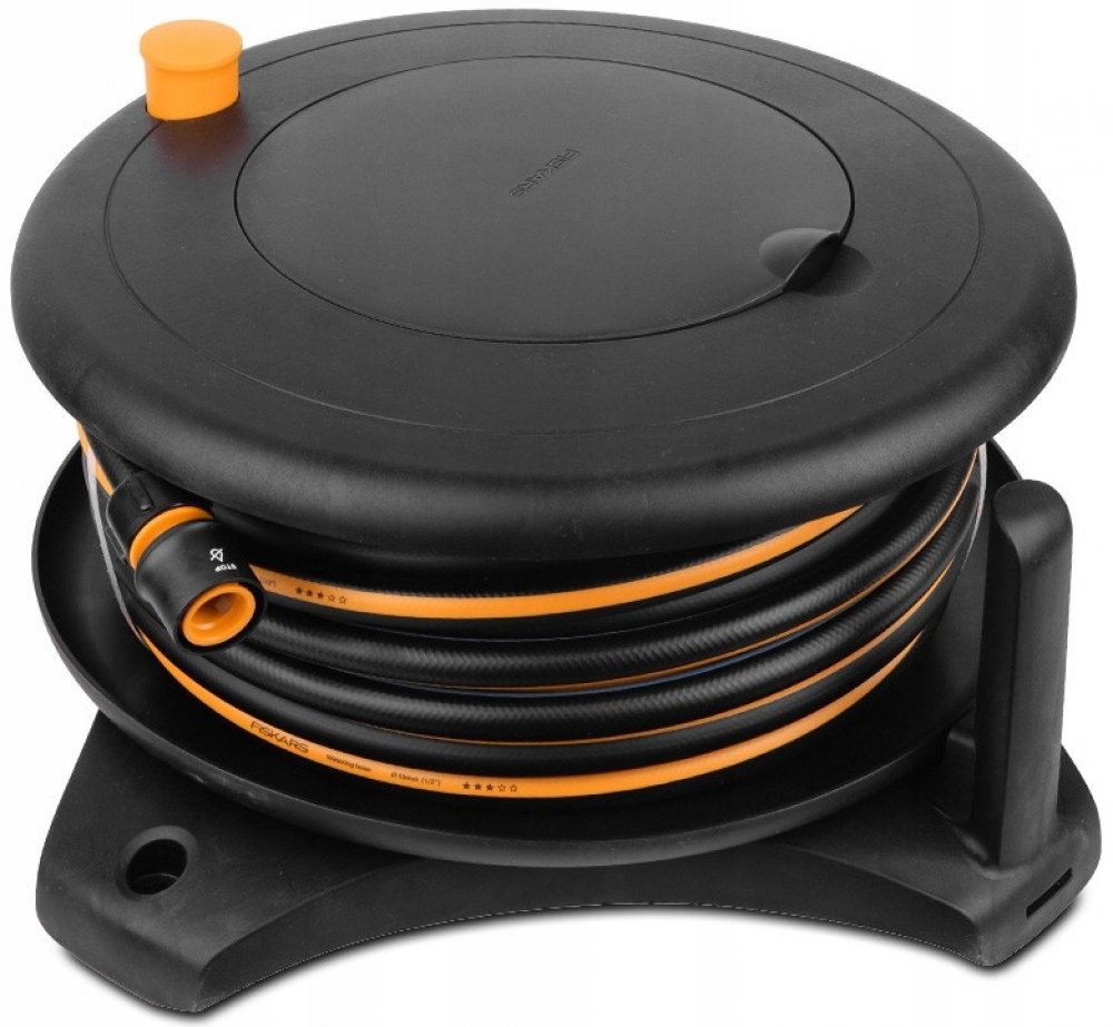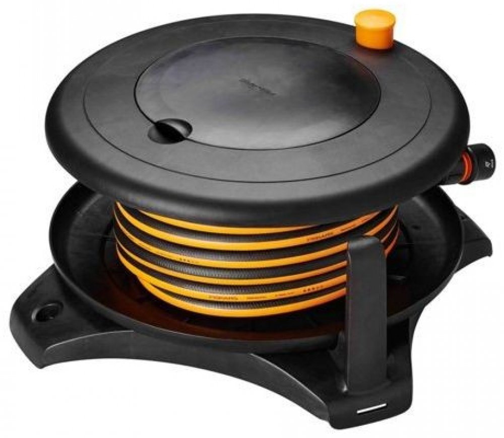 Integrovaná skříňka v tělese bubnu obsahuje nastavitelnou zavlažovací koncovku a univerzální spojku na vodovodní kohoutek