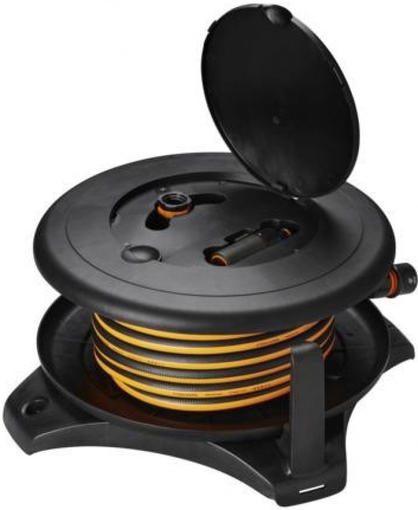 Cenově výhodná sada obsahuje hadici 13 mm (1/2") s dosahem až 21,5 m, buben a příslušenství - zavlažovací koncovku a multi spojku ke kohoutku. Libovolné umístění a 360° rotace bubnu umožnují zavlažovat mimořádně velkou plochu. Kompaktní velikost bubnu umožňuje jeho snadné přemísťování. Buben Fiskars lze též připevnit na stěnu (držák na stěnu se dodává samostatně - není součástí výrobku).