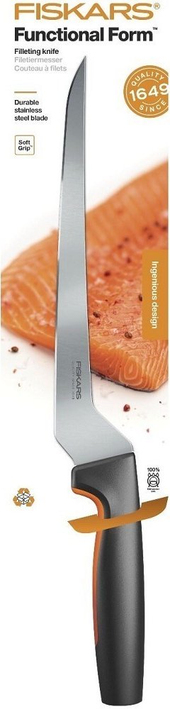 Fiskars z nerezové oceli na ryby 1 ks filetovací s nenáročnou údržbou 22.0 cm hladké plastové 53 HRC 108.0 g 34.5 cm