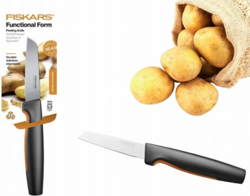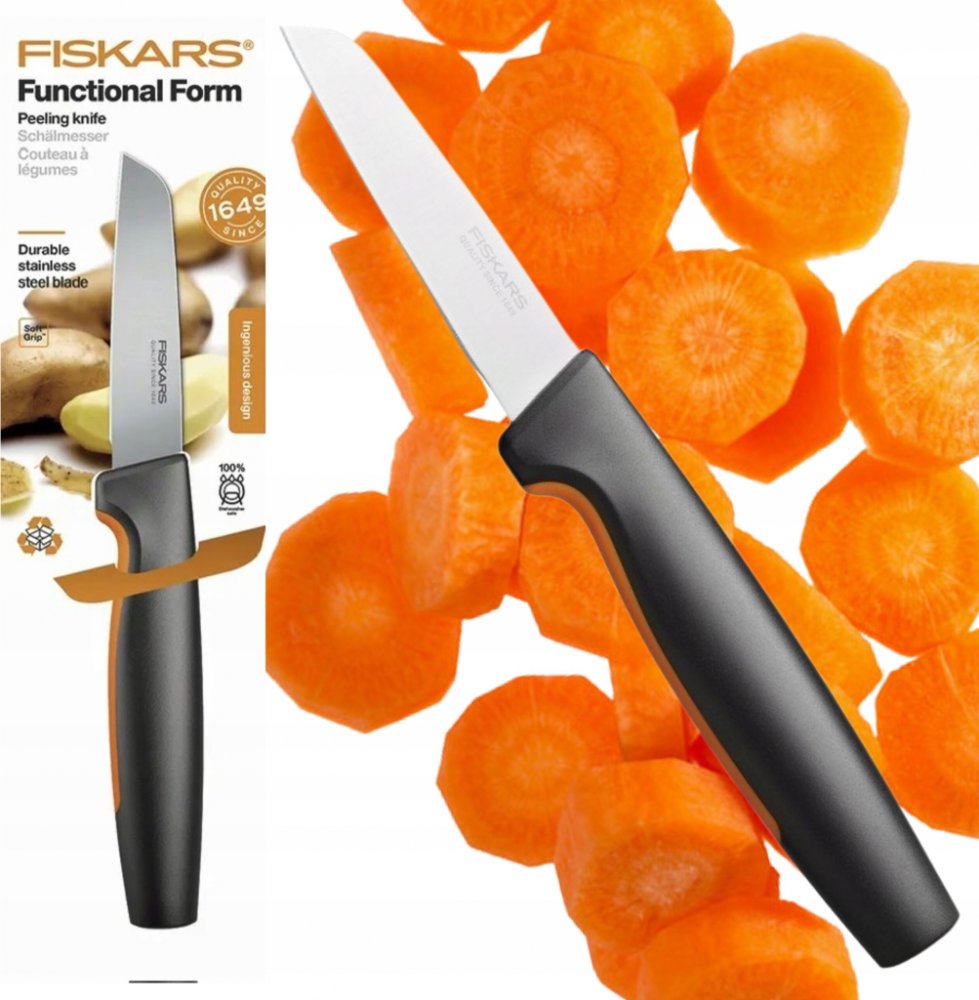 Fiskars z nerezové oceli na ovoce a zeleninu okrajovací a loupací s nenáročnou údržbou černé plastové 8 cm hladké 53 HRC 19.8 cm