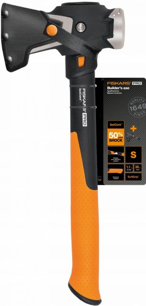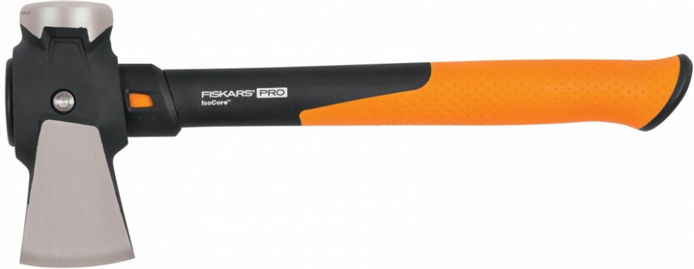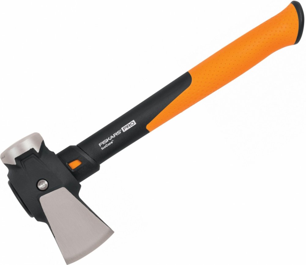 Stavební sekera Fiskars IsoCore S je ideální pro štípání malých polen a třísek zatímco hnací stranu lze použít jako úderovou plochu nebo k zatloukání kůlů.