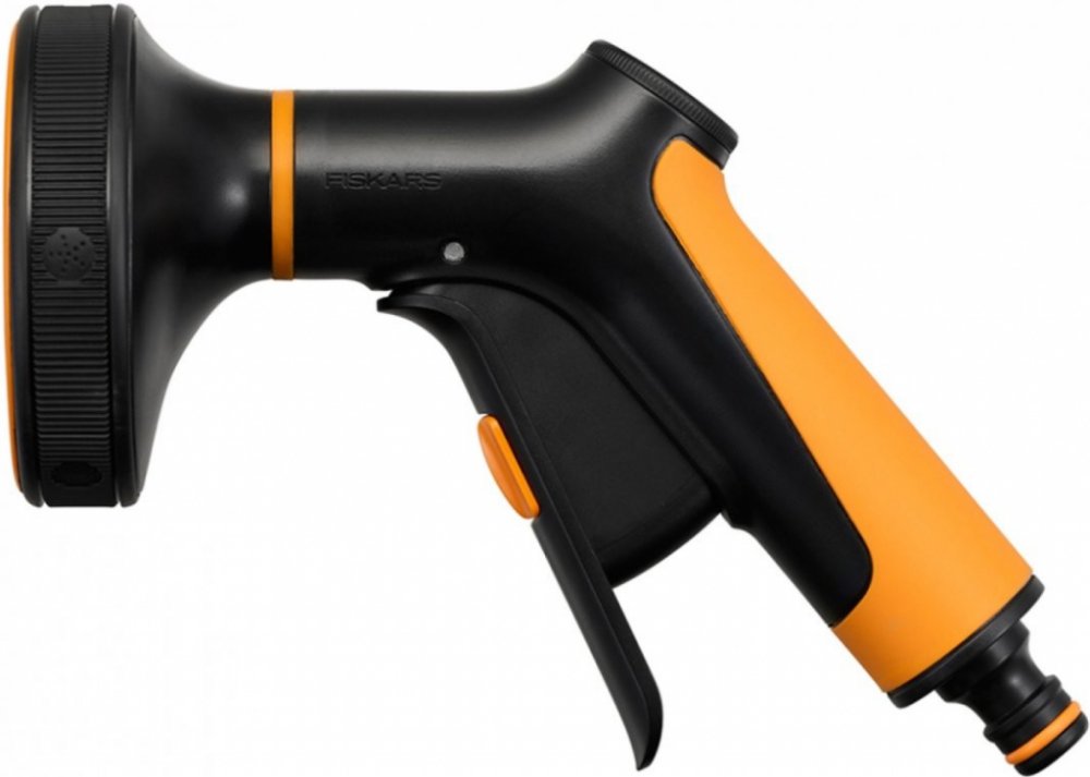 Nastavitelná zavlažovací sprcha multifunkční. Ergonomická rukojeť s předním ovládáním má plynule nastavitelný průtok a zámek pro zajištění průtoku. Otáčením vyměnitelné hlavy SoftGrip lze nastavit mlhový, sprchový, plochý, oplachový nebo proudový postřik. Odolává poškození způsobenému mrazem a v nízkých teplotách je při držení teplejší, než je u držení kovových trysek. Univerzální připojení je kom...