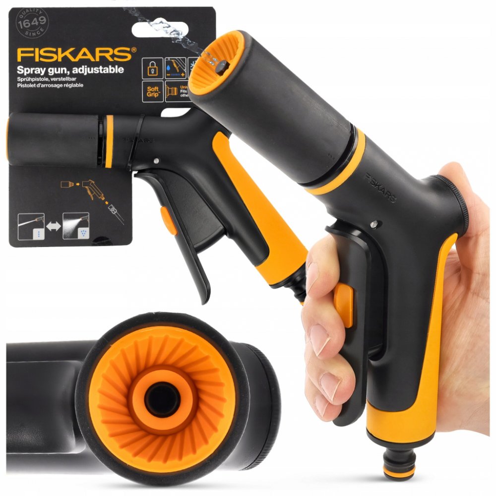 Zavlažovací tryska Comfort od značky Fiskars je ideálním pomocníkem pro pohodlné zavlažování rostlin. Přední ergonomický spouštěč zapnutí/vypnutí s povrchem SoftGrip™ je plynule nastavitelný a uzamykatelný, takže můžete snadno regulovat množství vody, které je z trysky vypouštěno. Otáčením vyměnitelné hlavice pak lze zvolit tryskový nebo oplachový postřik. Rukojeť trysky je navíc navržena tak, aby byla kompatibilní s ostatními vyměnitelnými stříkacími hlavicemi Fiskars i hlavicemi jiných značek. Díky tomu můžete snadno kombinovat různé hlavice a přizpůsobit zavlažování přesně vašim potřebám a úkolům. Dále se zavlažovací tryska vyznačuje dlouhou životností a odolností proti mrazu, kromě toho je při nízkých teplotách při držení teplejší, než je tomu tak u držení kovových trysek. To zajišťuje pohodlné používání i v chladnějších měsících.