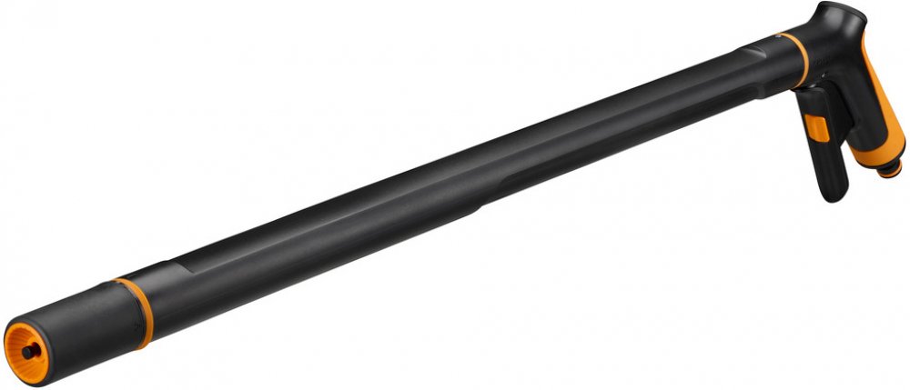 Zavlažovací tyč s předním ovládáním. Ergonomická rukojeť s předním ovládáním má plynule nastavitelný průtok a zámek pro zajištění průtoku. Otáčením vyměnitelné hlavy SoftGrip™ lze nastavit postřik od tryskání až po oplach. Odolává poškození způsobenému mrazem a v nízkých teplotách je při držení teplejší, než je u držení kovových trysek. Univerzální připojení je kompatibilní s ostatními značkami. Rozměry: délka 12,3cm šířka: 3,7cm výška 78,5cm. Hmotnost: 370g. Barva: černá, oranžová.