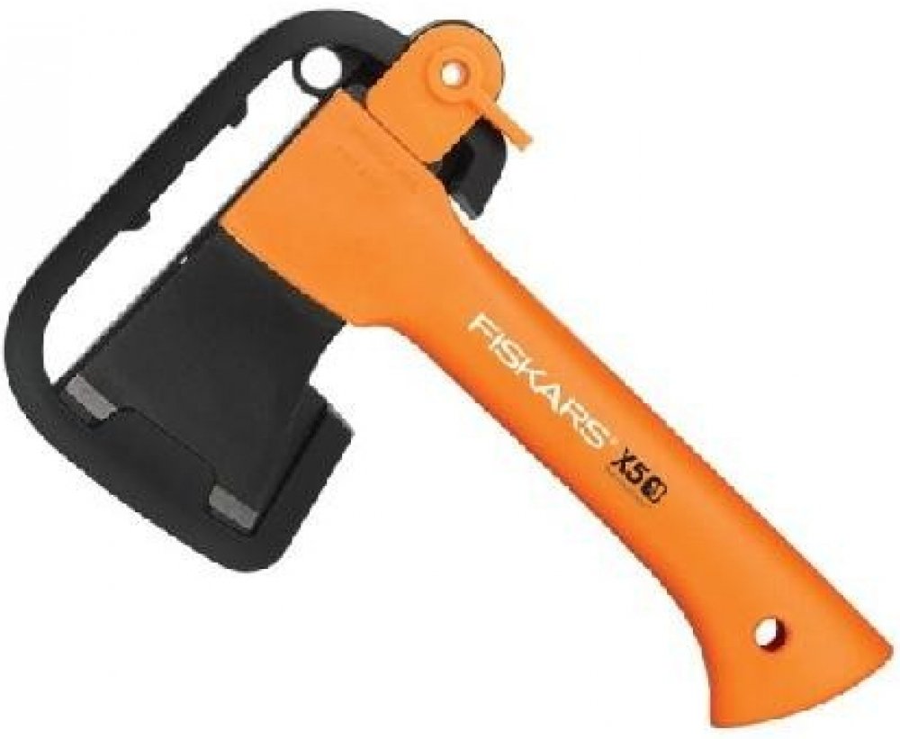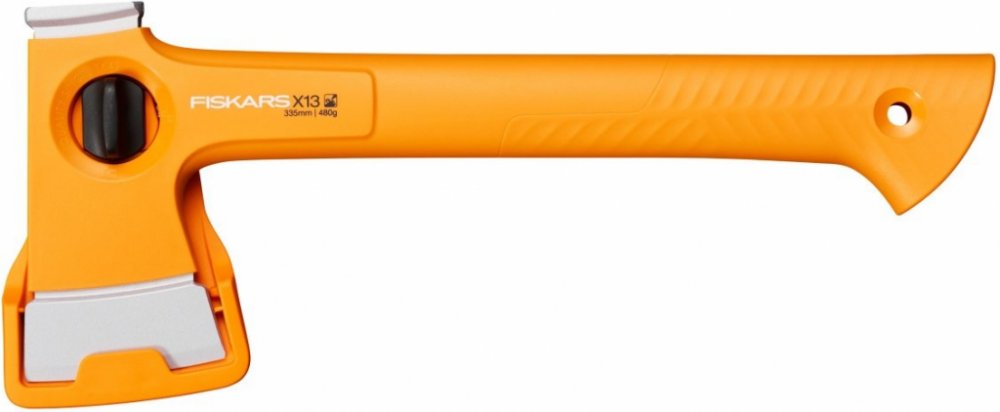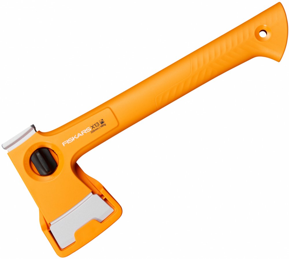 Oranžové topůrko je odolné a dobře viditelné. Ochranné pouzdro bezpečně chrání čepel sekery a nemusí se snímat. když zatloukáte do země kolíky ke stanu. Pouzdro má poutko na opasek a spolehlivý zajišťovací mechanismus.