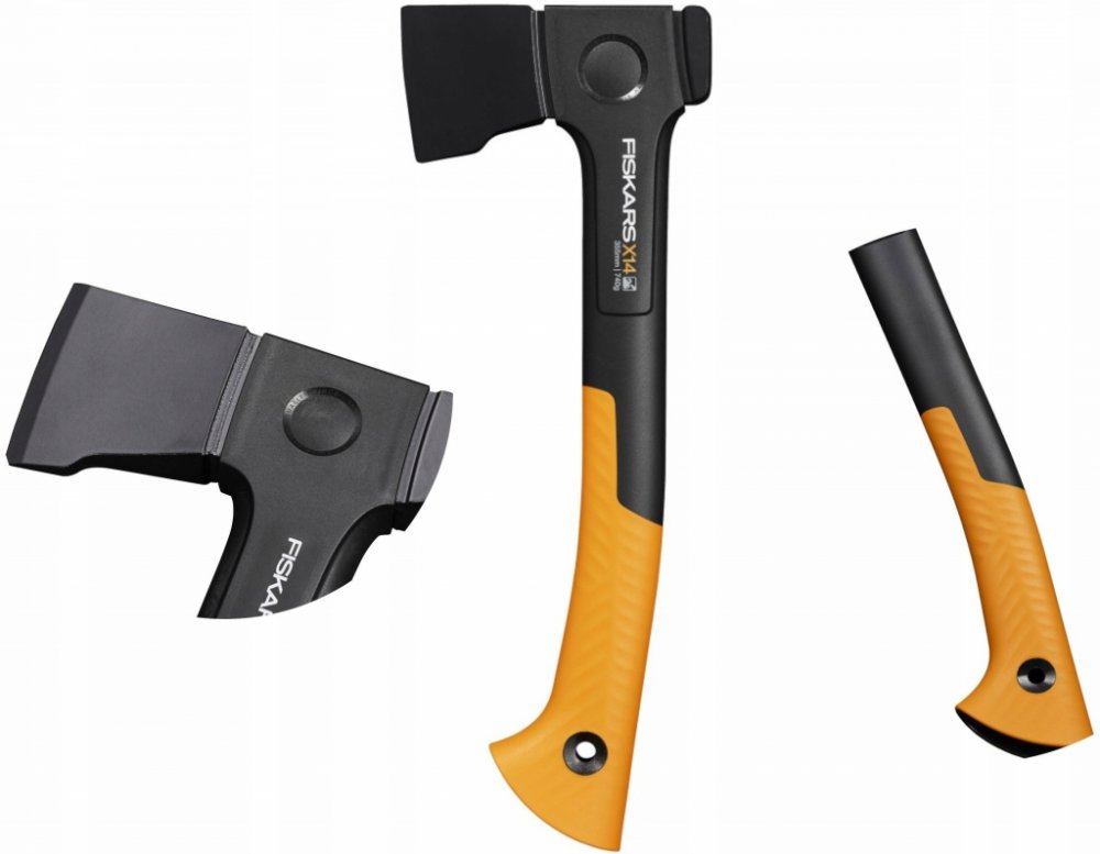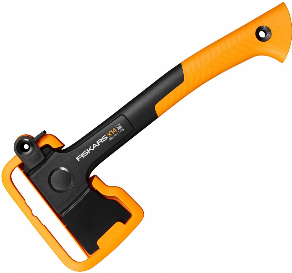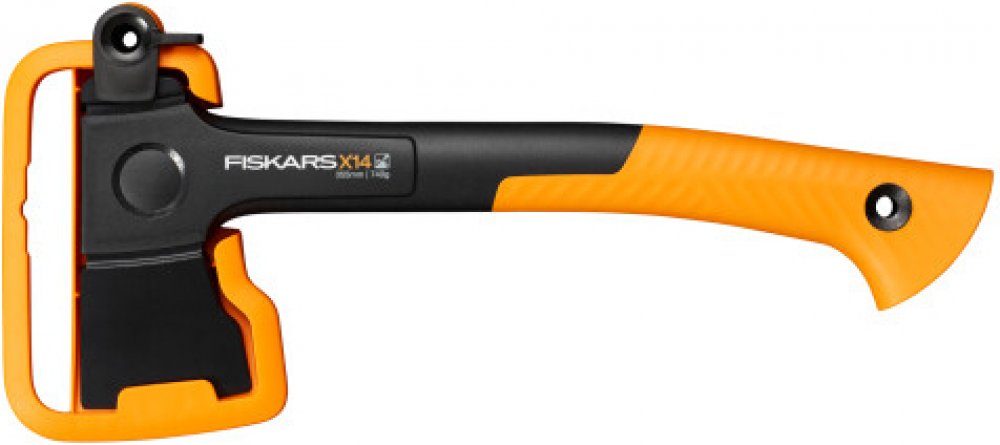 Oranžové topůrko je odolné a dobře viditelné. Ochranné pouzdro bezpečně chrání čepel sekery a nemusí se snímat, např. když zatloukáte do země kolíky ke stanu. Pouzdro má poutko na opasek a spolehlivý zajišťovací mechanismus.