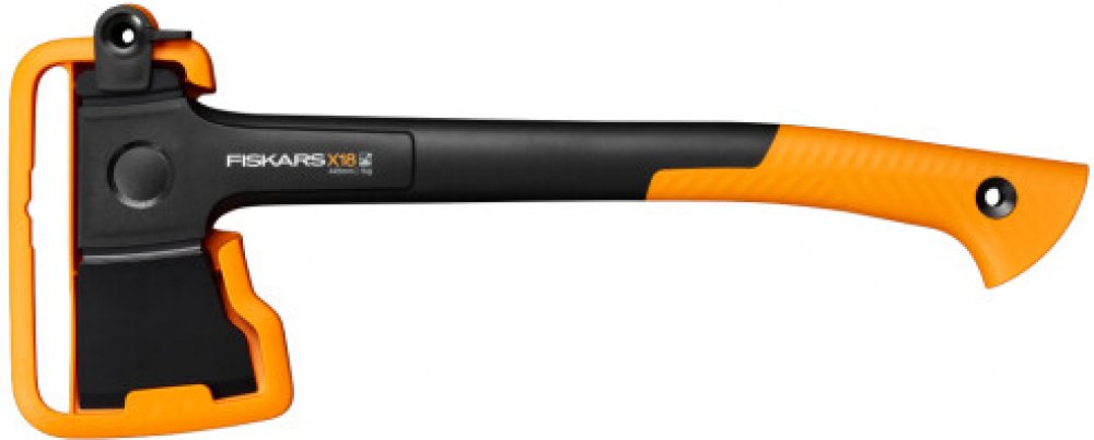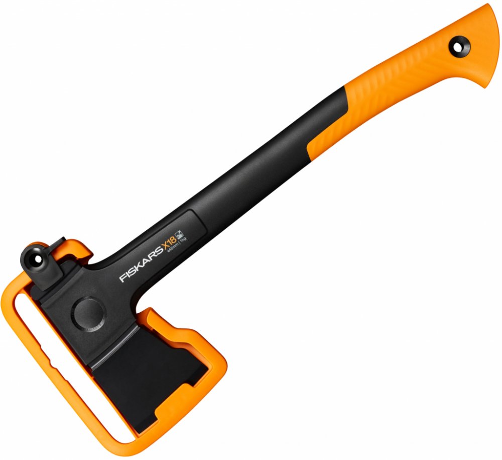 Oranžové topůrko je odolné a dobře viditelné. Ochranné pouzdro bezpečně chrání čepel sekery a nemusí se snímat, např. když zatloukáte do země kolíky ke stanu. Pouzdro má poutko na opasek a spolehlivý zajišťovací mechanismus.