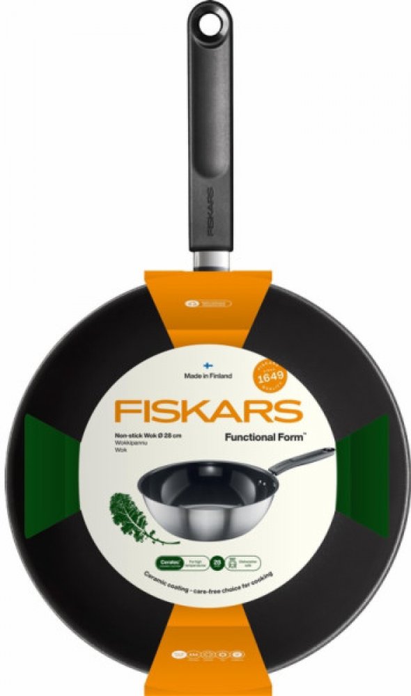 Pánev FISKARS Functional Form je ideální pro každodenní přípravu pokrmů, zejména pro smažení vajec, zeleniny, ryb, masa, rýže a nudlí připravovaných při vysoké teplotě nebo s kari. Tělo pánve je vyrobeno z odolné 90% recyklované nerezové oceli a lze ji používat na všech varných deskách včetně indukce. Je opatřena nepřilnavým keramickým povlakem Ceratec™ bez plastů, který se snadno čistí a lze ji m...