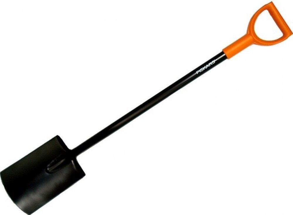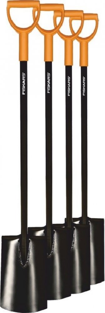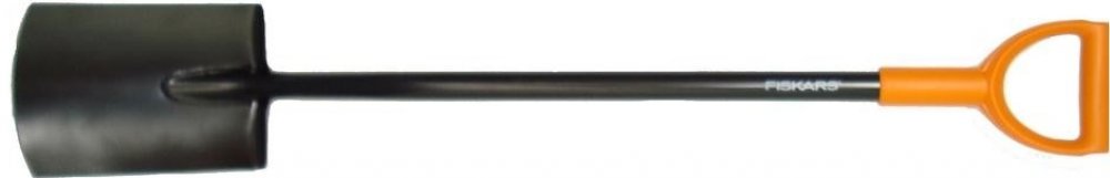 * Rovný rýč Fiskars Solid s naostřenou čepelí má svařovanou násadu s čepelí.