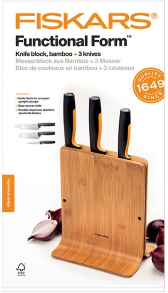 Fiskars Functional Form Bambusový blok 3 nože 1057553