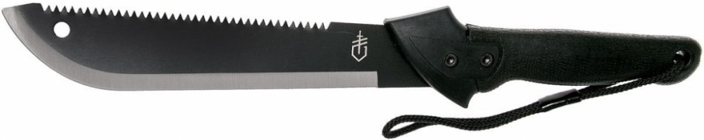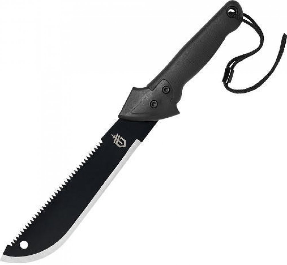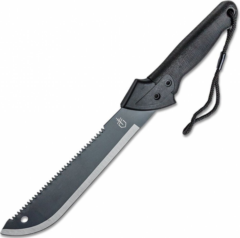 Šikovná a krátká mačeta Gerber Gator Machete Jr. ideální pro venkovní aktivity. Má univerzální čepel - z jedné strany s hladkou hranou az druhé se zoubkovanou hranou, kterou lze použít k řezání. Je z vysokouhlíkové oceli s povrchovou úpravou s černým oxidem. S patentovanou černou texturovaným rukojetí s povrchem Gator Grip. Dodává se s černým pouzdrem z nylonu a cordury.