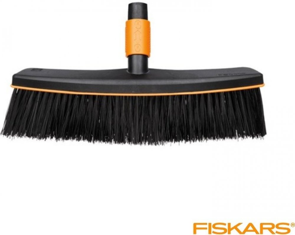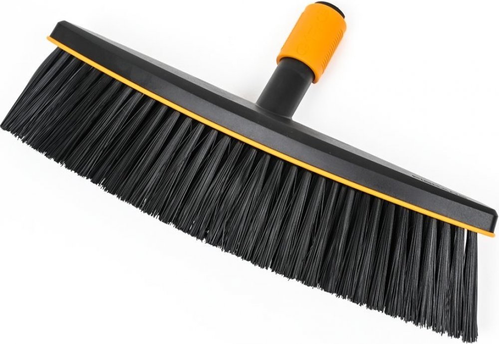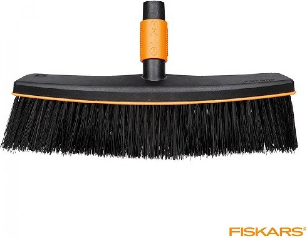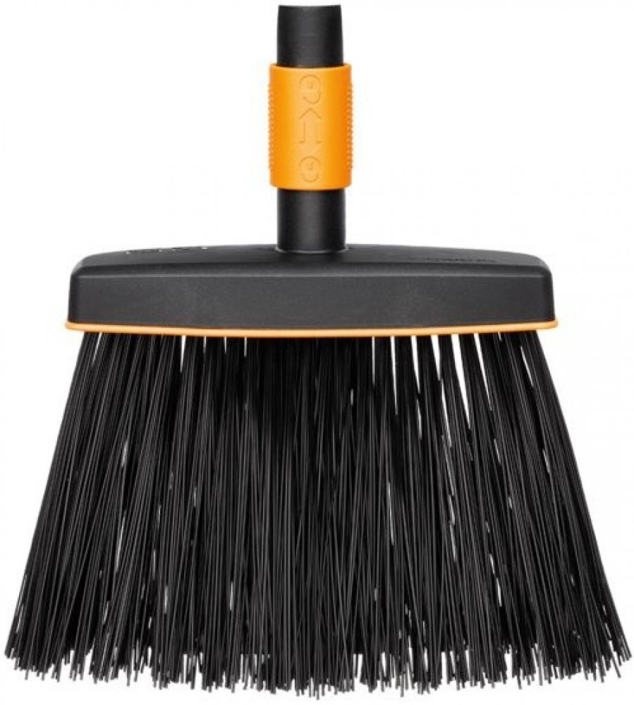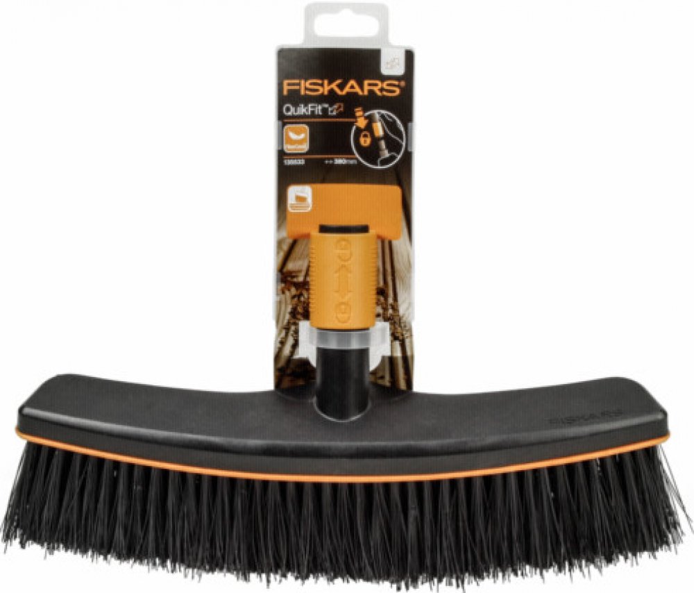 Koště na terasy Fiskars QuikFit je vhodné na zametání dřevěných i betonových teras. Štětiny jsou o něco jemnější než u univerzálního koštěte, a proto je koště ideální na terasy a jiné dřevěné povrchy. Díky šikmému připojení k násadě je zajištěna optimální pozice při práci a ergonomický pohyb tam a zpět. Široké koště s měkkými vlákny dovoluje rychlou a účinnou práci. Jemné štětiny, v barvě terakoty, se nacházejí vzadu se hodí pro použití na dřevěném povrchu. Tvrdší šedé štětiny jsou umístěny na přední straně. Může se používat se všemi standardními násadami. Koště váží 0,37 kg a měří 38 cm. Koště na terasy Fiskars QuikFit se bezpochyby řadí mezi elegantní a funkční nářadí, které je lehké, pevné a zvyšuje produktivitu práce na zahradě. Mechanismus zámku QuikFit umožňuje rychle a pevně připojit příslušný pracovní nástavec řady QuikFit na násadu a jednoduše jej zase sundat.