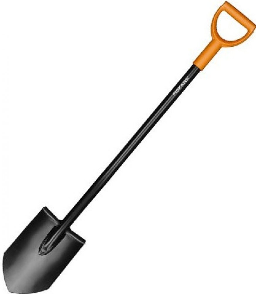 Univerzální rýč Fiskars Solid se špičatým nabroušeným ostřím.