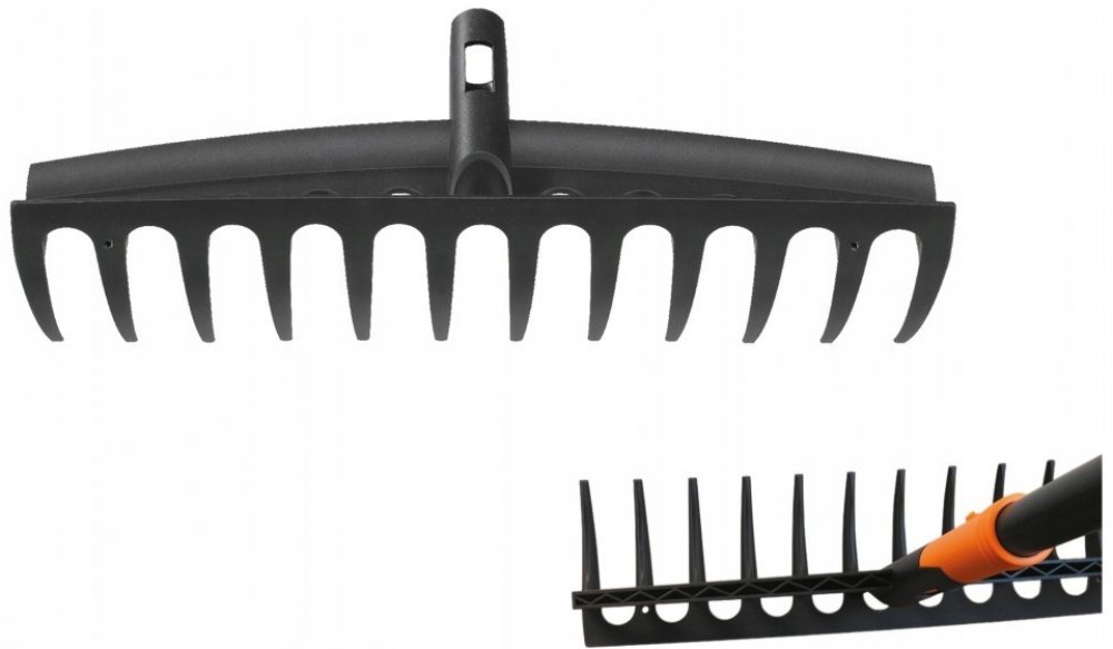 Univerzální hrábě z trvanlivého a pevného plastu - výměnný pracovní nástavec k násadě FISKARS Solid 135001.