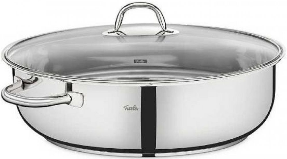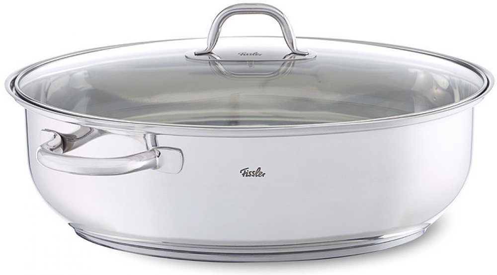 Oválný pekáč s poklicí Fissler je vyroben z ušlechtilé nerezové oceli 18/10 (18 % chromu, 10 % niklu, 72 % oceli), velice snadno se čistí, je hygienický a mimořádně odolný vůči korozi. Ucha a úchyty v leštěném provedení zůstávají chladné po celou dobu vaření. Poklice z tvrzeného skla dokonale dosedá a díky tomu je vaření energeticky úsporné a navíc máte naprostou vizuální kontrolu nad celý procesem vaření. Pekáč je ideálním řešením pro recepty, kdy potřebujete začít na sporáku a pokrm dopéct v troubě nebo naopak.
