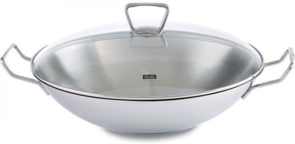 Nerezová pánev Wok Kunming 36 cm se skleněnou poklicí, vhodná pro všechny druhy ohřevu včetně indukčního (uvedený rozměr vyjadřuje průměr pánve) Ať už zbožňujete exotickou kuchyni, nebo jen chcete vařit šetrněji a zdravěji, pánve wok značky Fissler vám přinesou nevšední kulinářské zážitky. Vynikající kvalita materiálu a špičkové zpracování jsou skvělým předpokladem pro přípravu orientálních pochoutek. Wok z ušlechtilé oceli se skleněnou poklicí Pohodlná kovová držadla z ušlechtilé oceli a praktická fritovací mřížka Vhodná pro všechny druhy sporáků včetně indukčních