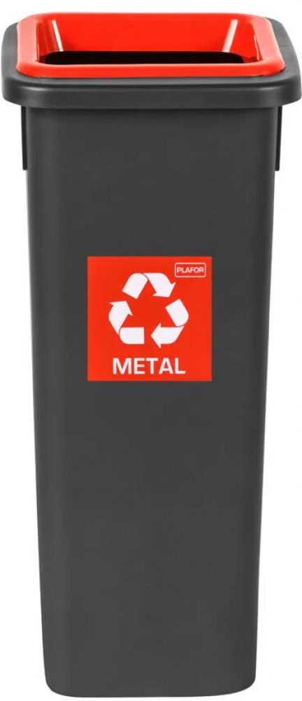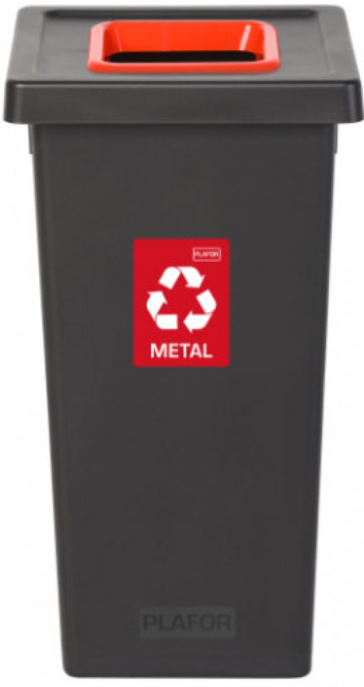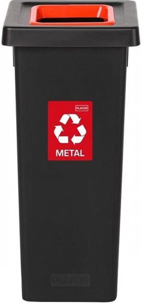 Odpadkový koš na tříděný odpad Fit Bin black 75 l, červený - kov Zjednodušte si třídění odpadu a pořiďte si náš krásný koš za výhodnou cenu. Velmi kvalitně zpracované koše na tříděný odpad v černé barvě. Barevné provedení víka určuje do jakého kontejneru odpad patří. Máme varianty v barvě žluté - plast, zelené – sklo, modré – papír, šedé – směsný odpad, červené – kov. Koše nabízíme hned v několika objemových variantách, takže si svoji velikost vybere opravdu každý. Koše jsou vhodné do škol, nemocnic, domácností, průmyslových provozů, kanceláří, kosmetických salonů a všude tam, kde chtějí třídit odpad a pomáhat tak naší planetě. Odpadkové koše na tříděný odpad jsou vytvořeny s ohledem na budoucnost, protože na ochraně životního prostředí a snižování spotřeby energie ve světě velmi záleží. Originální design a dokonalé zpracování uspokojí i toho nejnáročnějšího člověka. Koše mají štítek a víko s uvedením druhu tříděného odpadu. Každý koš má kovový rám, který drží tašku nebo pytel na odpad. Dodatečně lze dokoupit velmi praktické plastové podstavce určené pro 2 nebo 3 koše. Naučte třídit odpadky i ty nejmenší a pořiďte tyto krásné koše do školky nebo školy. JAK SPRÁVNĚ TŘÍDIT KOVOVÝ ODPAD? Kontejnery na kovový odpad jsou určeny zejména k třídění drobnějšího kovového odpadu, jako jsou nápojové plechovky, plechové obaly od potravin, kovová víčka z láhví apod.Hlavním místem pro sběr rozměrnějšího kovového odpadu jsou sběrné dvory a výkupny surovin. Tak jako v předešlých případech třídíme kovové obaly bez zbytku obsahu – ten stačí důkladně vytřít či vyškrábat, v případě tub vymačkat. I v tomto případě se snažíme zmenšit velikost tříděného odpadu, je-li to možné. Do kontejnerů na kovy nepatří : kombinované obaly (např. pokovený papír a plast, výjimkou jsou nápojové kartony, které třídíme do nádob určených k jejich sběru), plechovky od barev a laků, spreje a tlakové nádobky se zbytky obsahu, obaly od nebezpečných látek, těžké nebo toxické kovy, jako jsou olovo a rtuť, elektroodpad a baterie.
