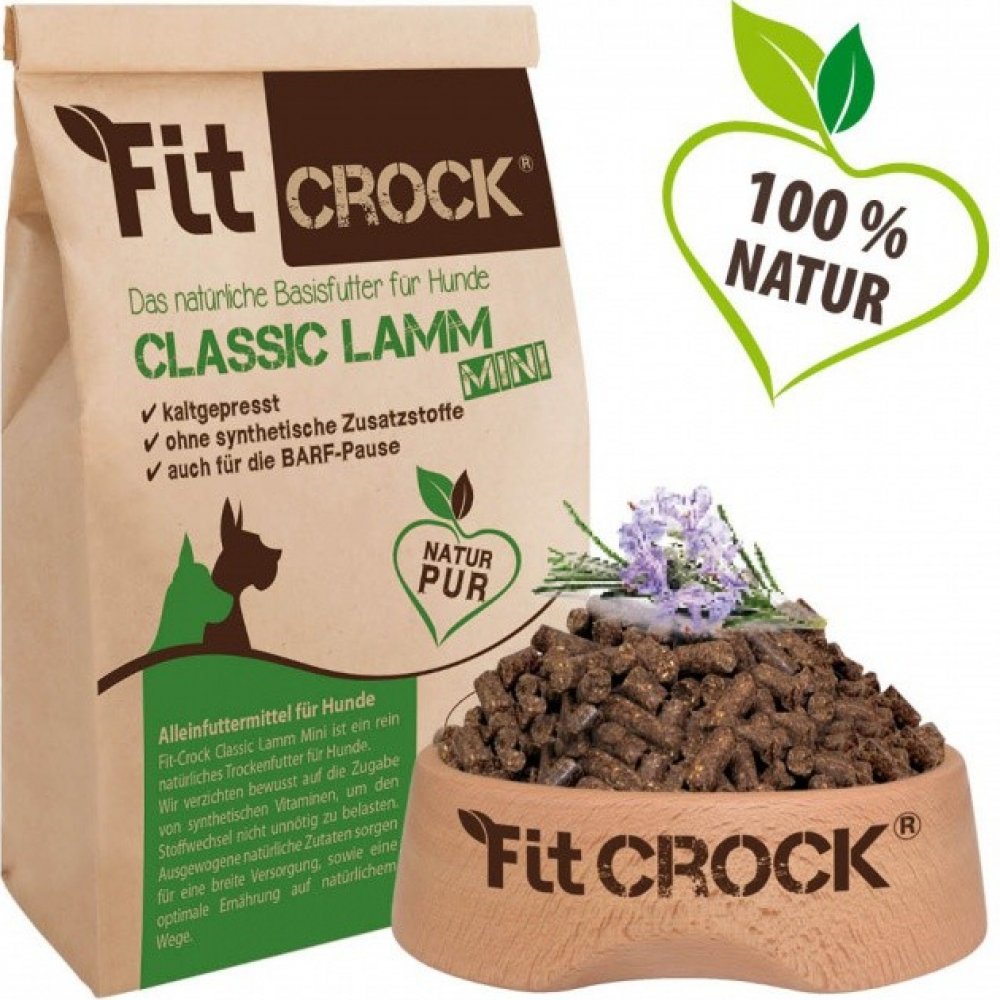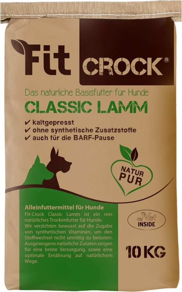 Za studena lisované přírodní kompletní krmivo Fit-Crock Classic z jehněčího masa poskytuje široké výživové zaopatření také citlivým, běžně aktivním zdravým dospělým psům. Kromě velkého podílu masa obsahuje rostlinné složky s vlákninou pro čistá střeva, přírodní vitamíny, cdVet byliny, minerální látky a oleje. Šetrné lisování, kvalitní suroviny, doba trávení + optimální složení splňují kritéria konceptu pro částečný BARF (ráno krmivo / večer maso). Průměr válečků krmiva 15 mm, délka 20 až 30 mm.