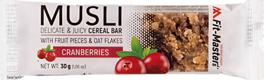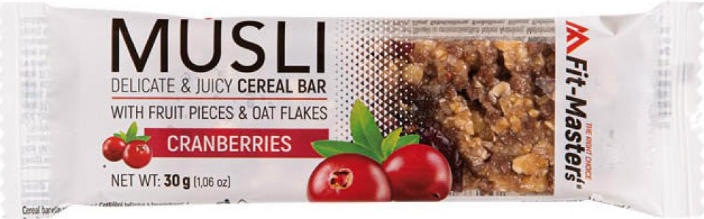 Cereální tyčinka s vysokým obsahem vlákniny, sacharidů, s kousky ovoce a ořechů. Müsli tyčinka vám poskytne potřebnou energii ať už jste ve škole, v práci nebo na cestách, zkrátka po celý den.