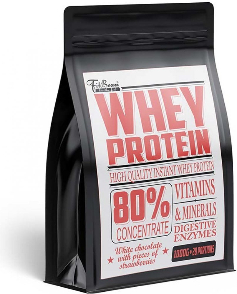 Nutriční hodnoty FitBoom Whey Protein 80% 1000g - Jahoda, Bílá čokoláda: