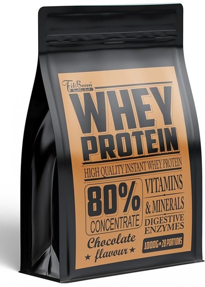 Whey Protein 80% od FitBoom je velmi chutný a lehce rozpustný syrovátkový protein, kterým snadno obohatíte svoji stravu o kvalitní zdroj bílkovin. Fitboom WHEY PROTEIN 80% je suplement pro sportovce, který obsahuje vysoký obsah bílkovin z kravského mléka. Bílkoviny jsou důležité pro růst a obnovu svalů po cvičení a Fitboom WHEY PROTEIN 80% je vhodný pro sportovce, kteří chtějí zvýšit obsah bílkovi...