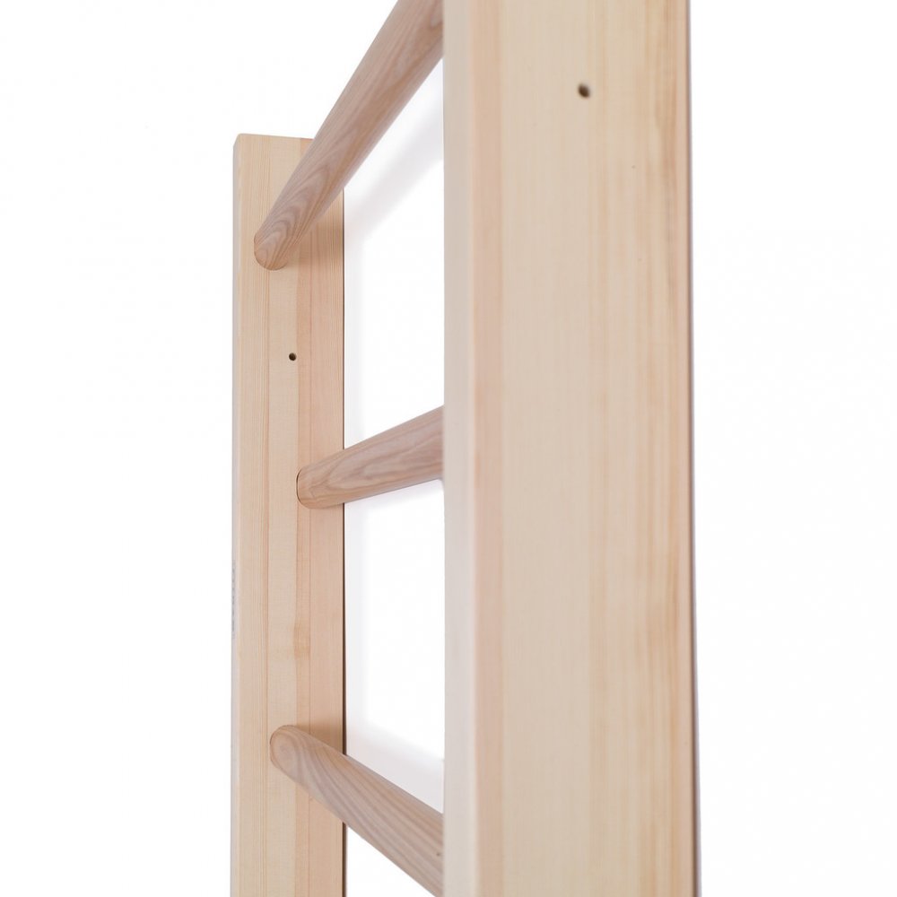 luxusní drobnost: uživatelé, kteří se chystají žebřiny používat pro TRX, by nejspíš uvítali variantu - já osobně klidně za příplatek -, s pro tyto potřeby dimenzovaným, masivnějším uchycením do zdi